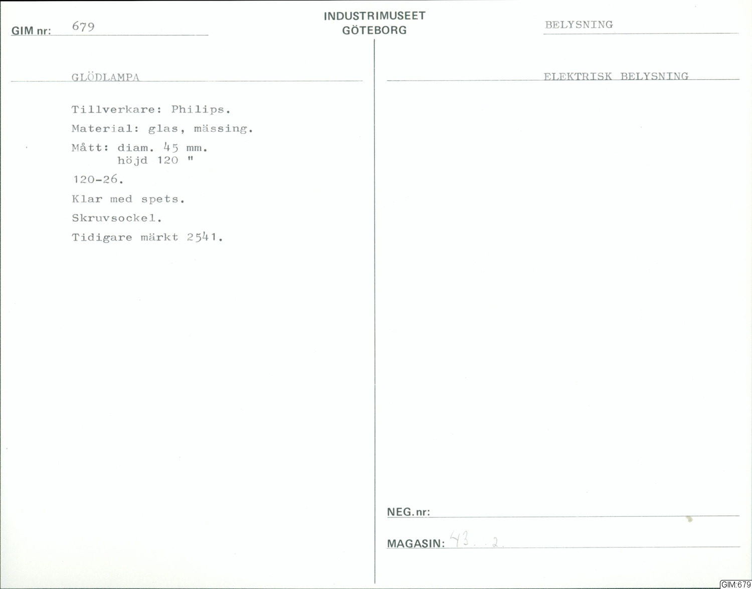- 120-26; skruv sockel tidigare märkt 2541 klar spets.