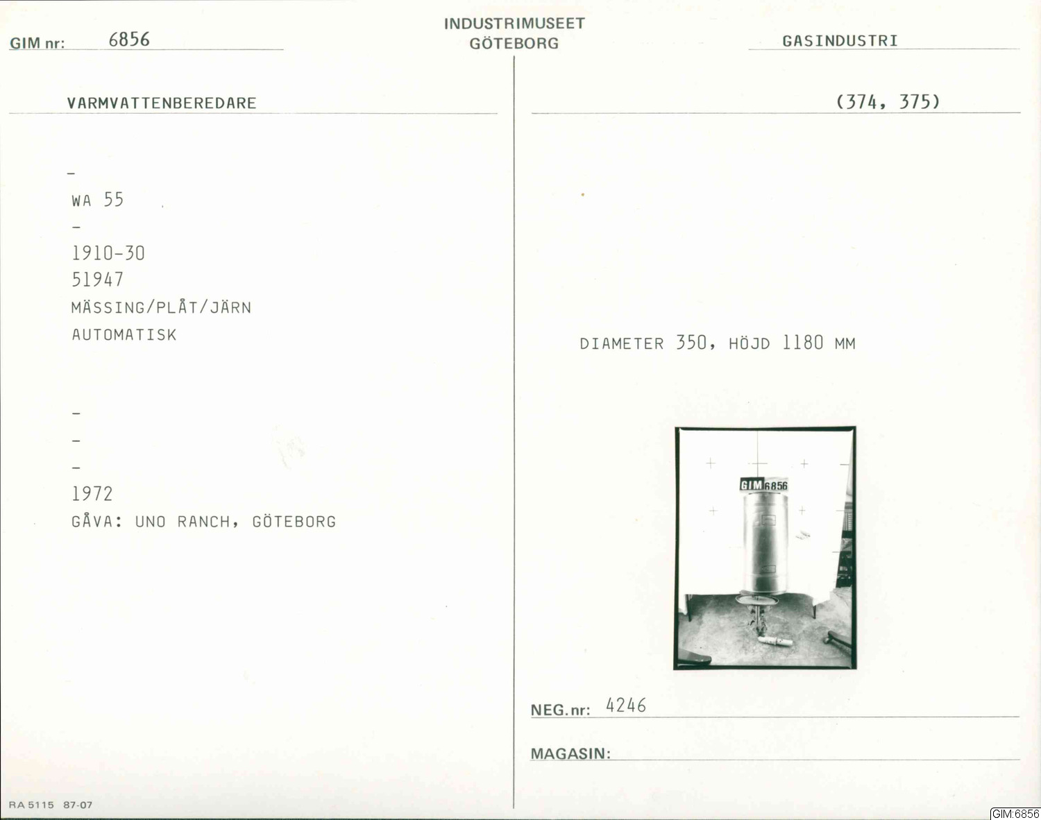 Automatisk varmvattenberedare. Signerad och märkt: 51947.