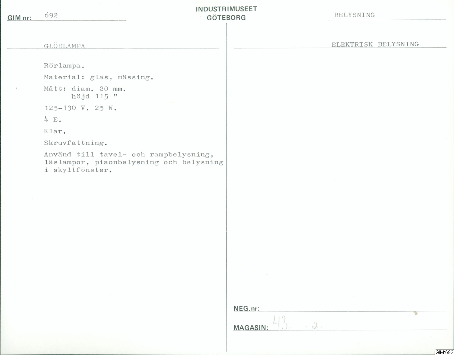 GIM:692 :: glödlampa, lamptillbehör