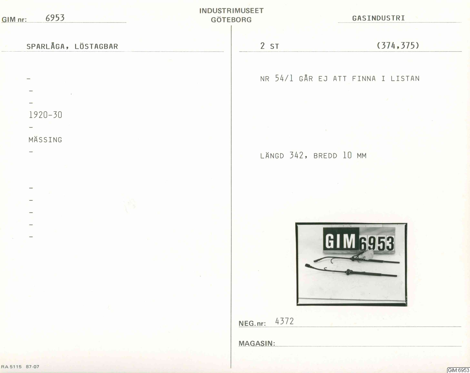Löstagbar. OBS! numret 54/1 går ej att finna i listan