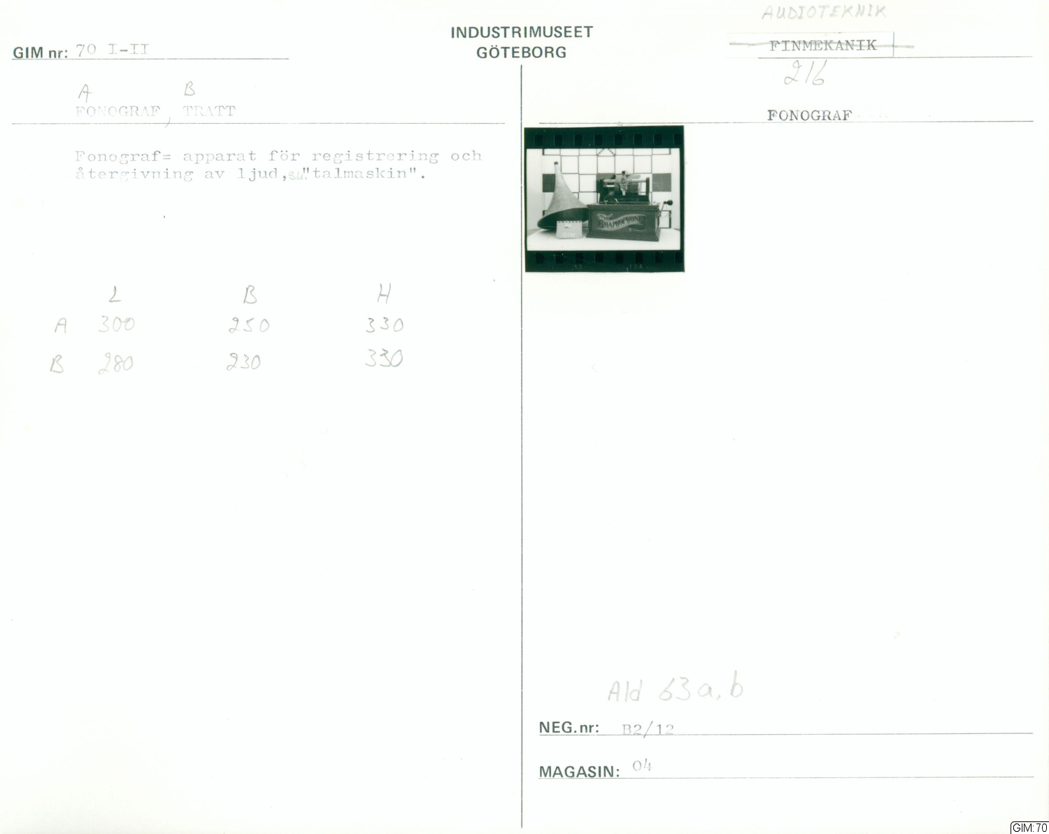 GIM:70 :: fonograf, audioteknik, grammofontratt