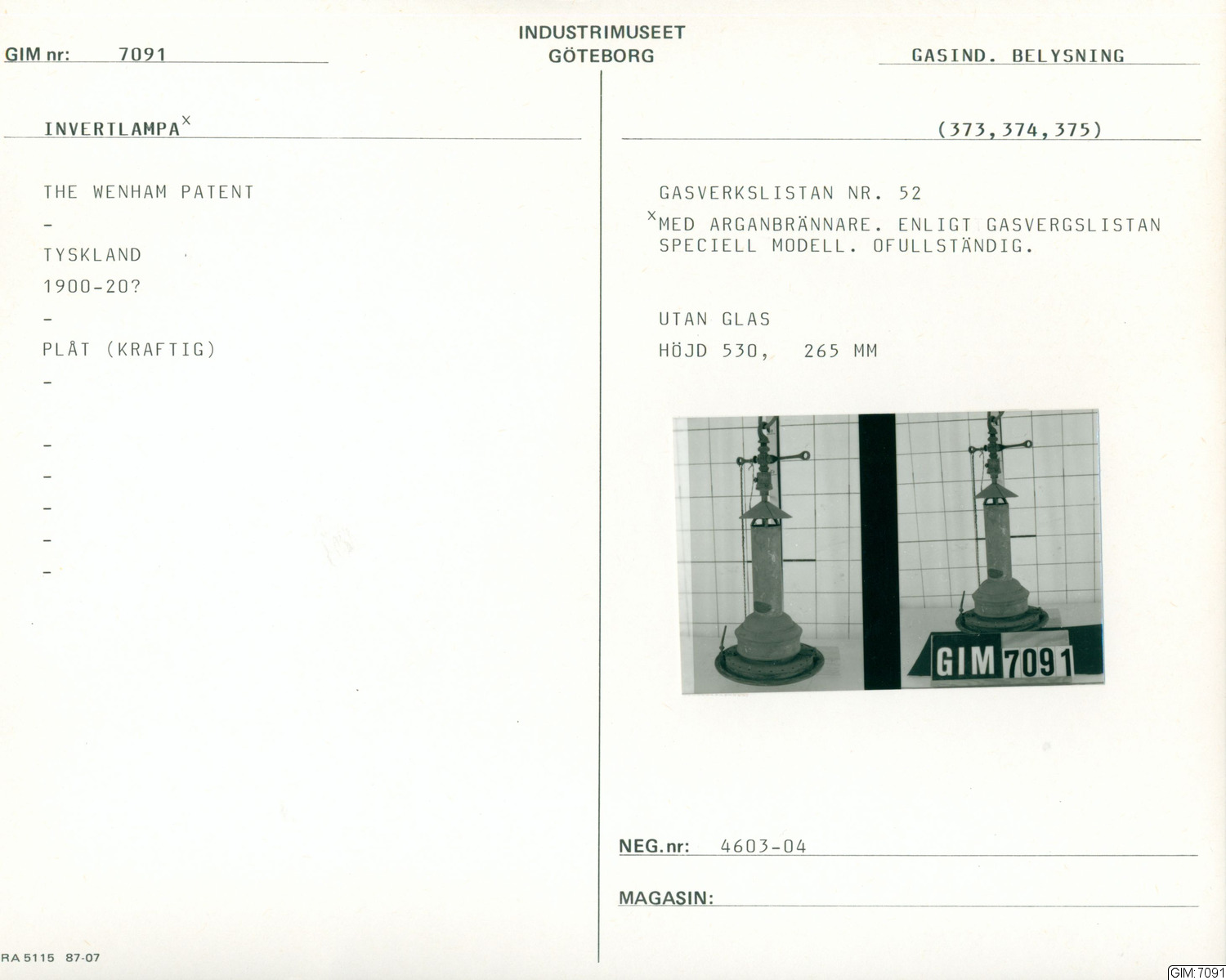 Gasbelysning med argonbrännare.enl gasverkslistan speciell modell ofullständig