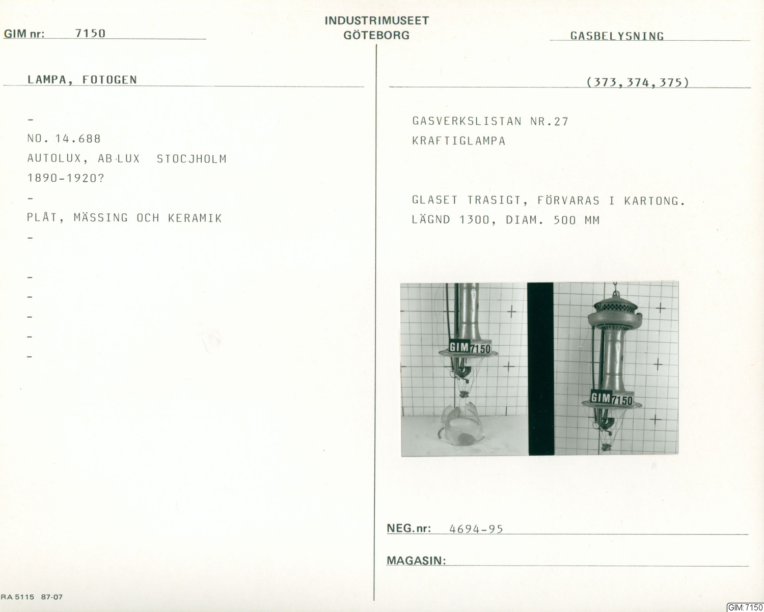 GIM:7150 :: fotogenlampa, lampor, lampa
