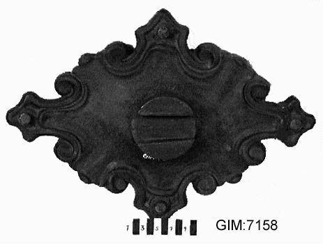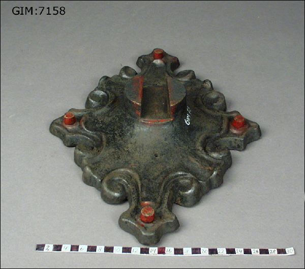 väggfästplatta till gjuten lyktarm för väggbelysning. Rödmålade bultar 4st