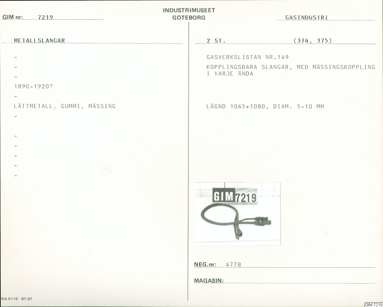 Kopplingsbana slangar. Med mässingskoppling i varje ände.