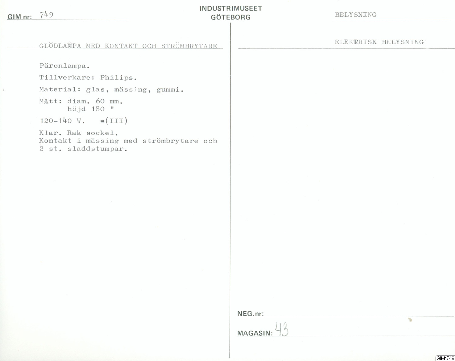 GIM:749 :: glödlampa, lamptillbehör