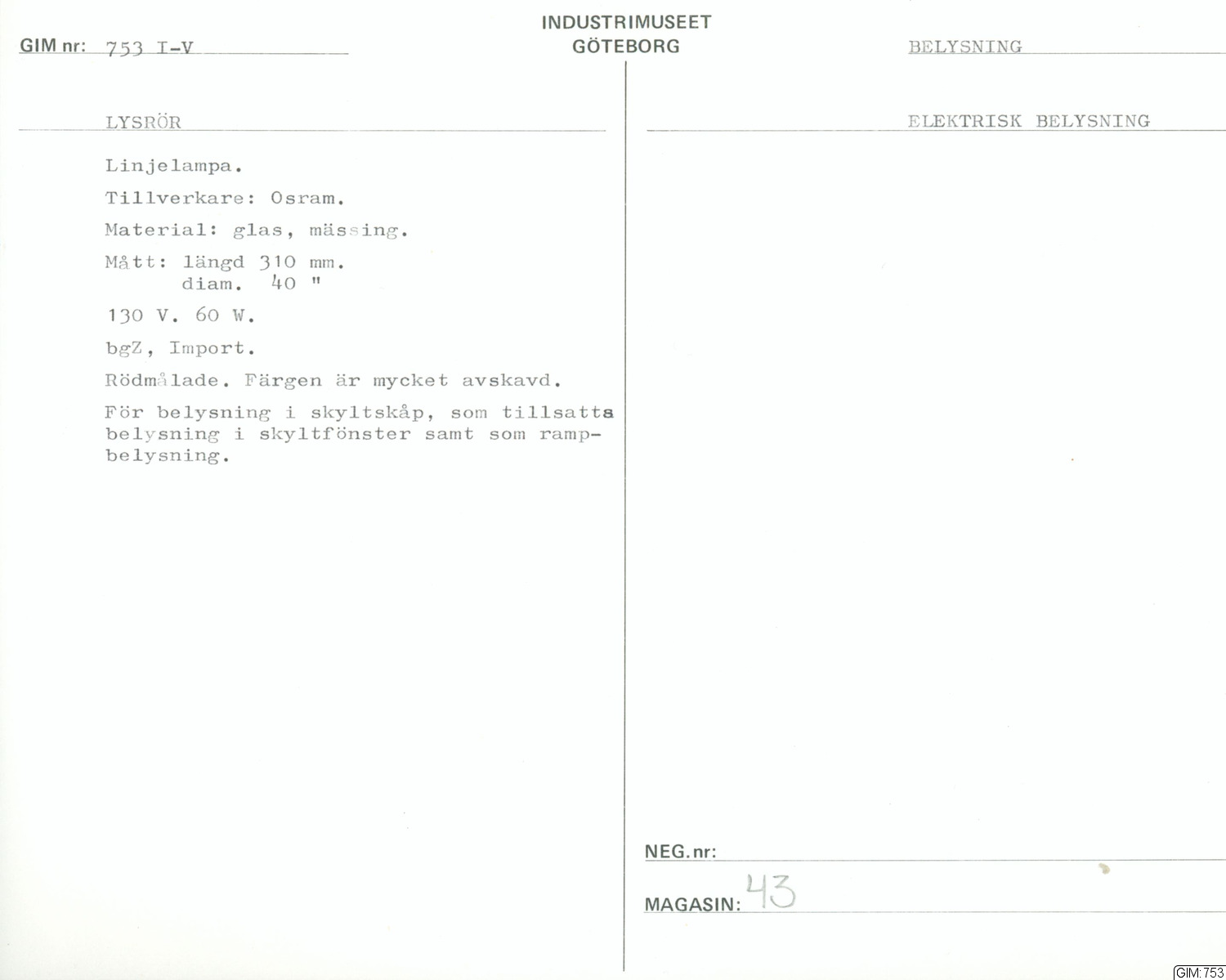 GIM:753 :: lysrör, lamptillbehör