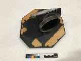 svartlackerad mässing monterad på svart trästycke