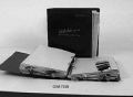 2 blå pärmar i läderpressad kartong med katalogkort med garnprover i olika färger, tjocklek och av olika textilfibrer, 1977 och 1978.