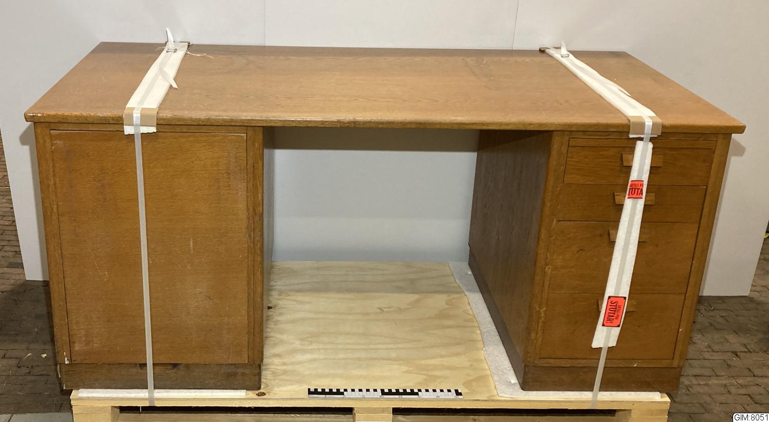 Ek, en hurts med fyra lådor, en hurts med vippdörr, ett hyllplan och en låda