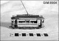 - Modell av Göteborgs Spårvägars motorvagn 1908, typ M4. Ex 59. Med förare och konduktör. Ljusblå linjeskylt längs taket "Långedragslinjen", ljusblå frontskylt "Järntorget", akterskylt "Långedrag"