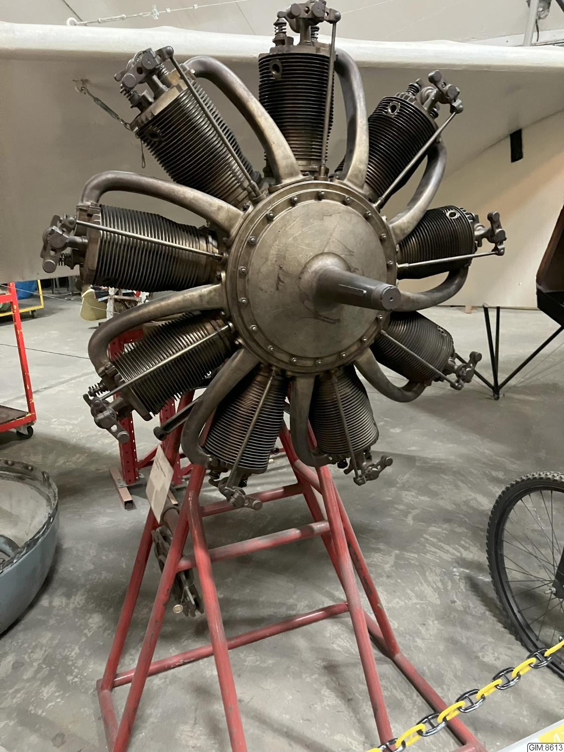 Flygmotor 9 cyl 4 takt roterande stjärnmotor effekt 90 hk cylinder 120x160 mm 18 lit