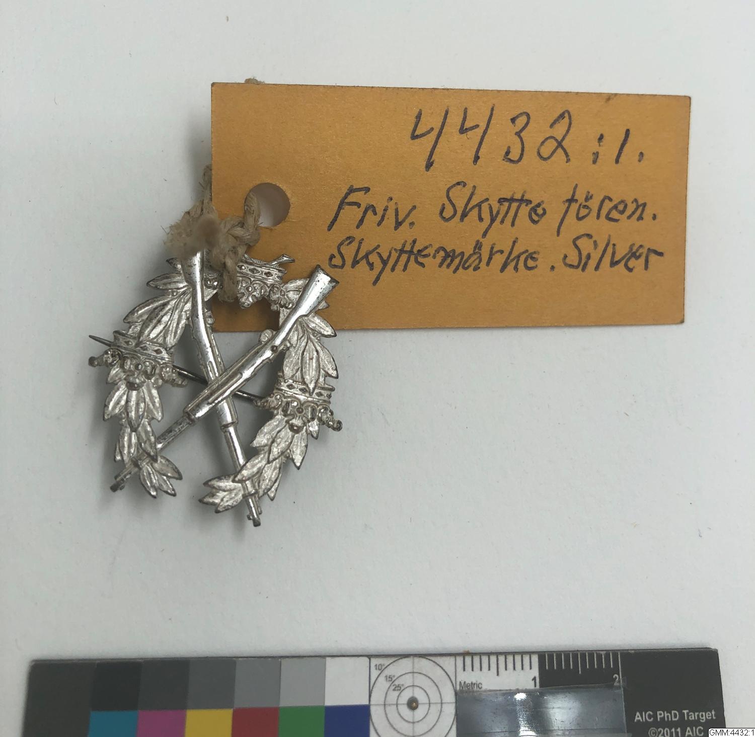 - Frivilliga skytteföreningarnas skyttemärke i silver.