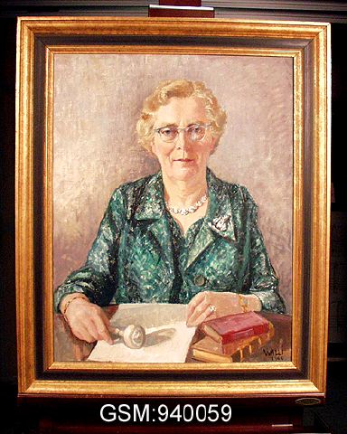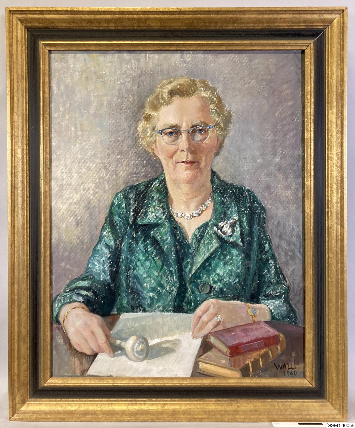 Tavlan tillhört KFUK. Edit Hedin var verksam som som rektor vid flickskolor i Göteborg.