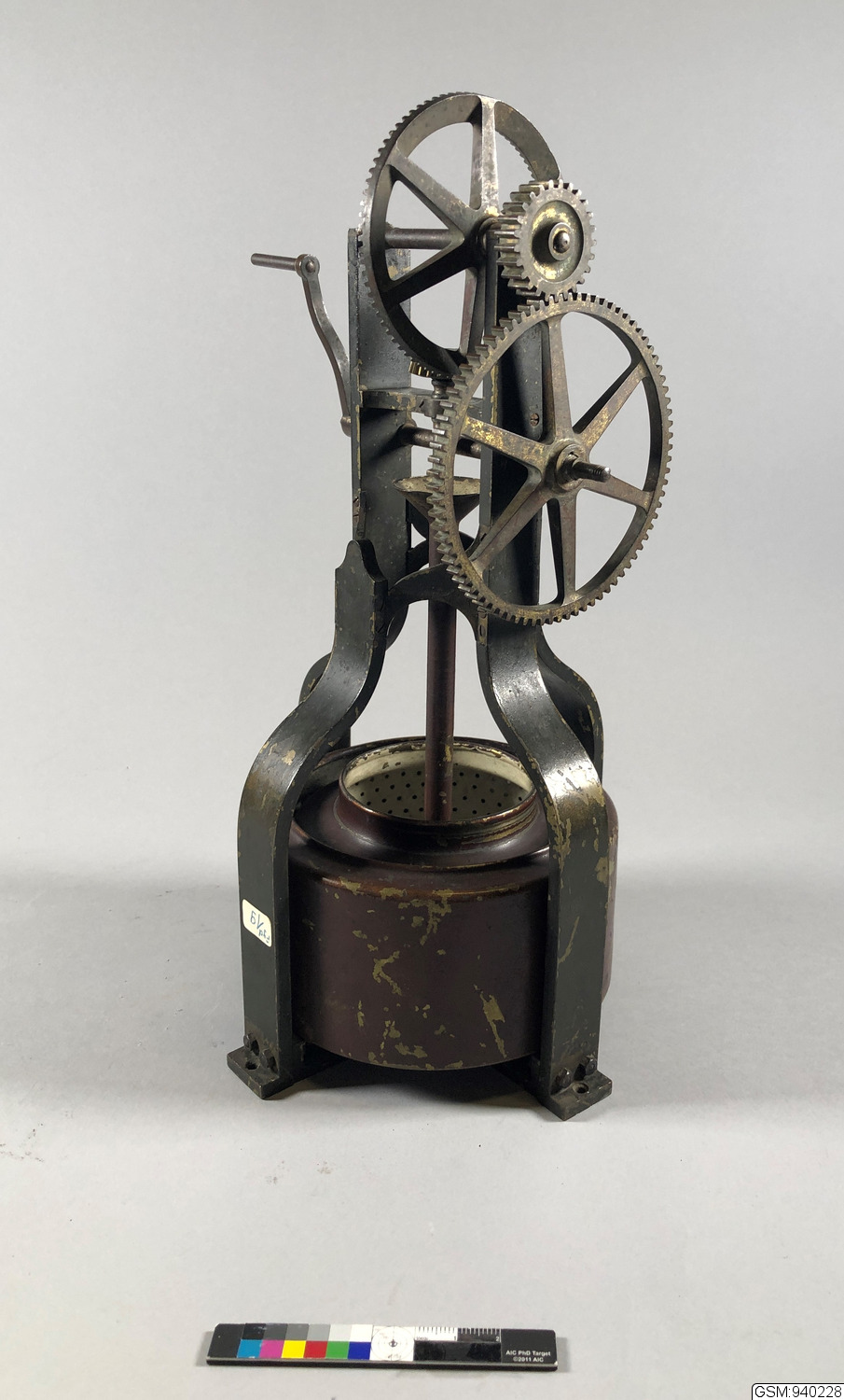 Modell av centrifug, vevad kugghjulsdrift. Märkt CTH 2018. [enligt registerblankett]