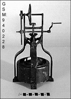 Modell av centrifug, vevad kugghjulsdrift. Märkt CTH 2018.