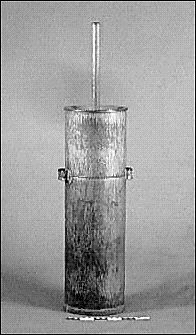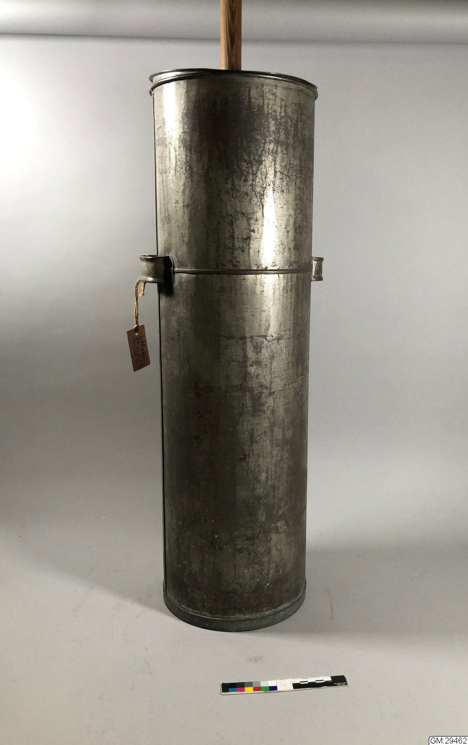 FÖR KÄKNING AV SMÖR; Smörkärna av plåt med stöt av trä.#GM 29 462:1 = kärna#GM 29 462:2 = lock#GM 29 462:3 = stöt