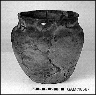 - "lerkärl med kort bred överdel överrst på buken ornerad med fingerintryck mindre regelbundet anbragda 23.3 cm hög, 19 cm vitt över kanten. Hopsatt ber nr 2. Härtill bärnda ben och koll"