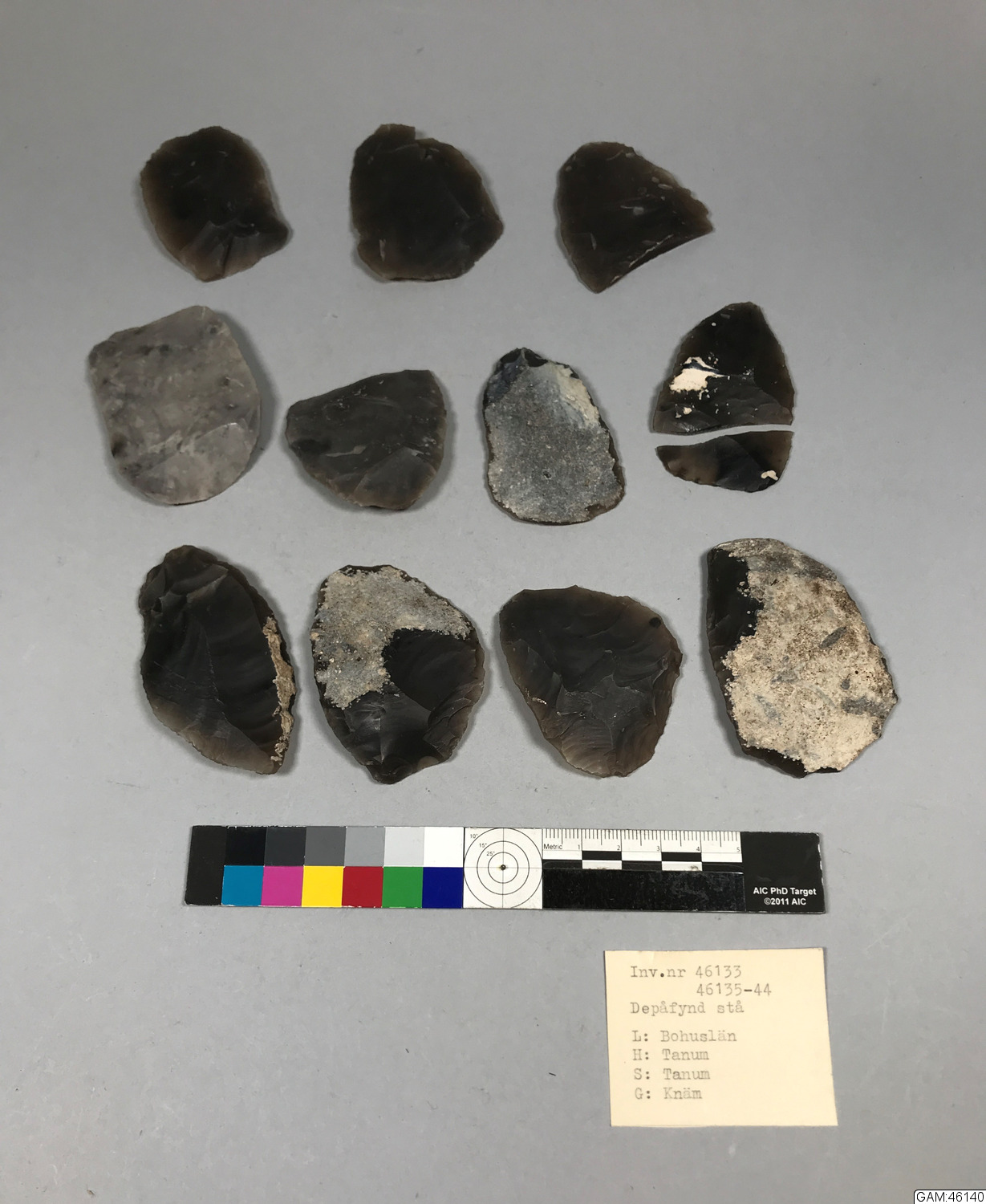 1 st flintskärva 5,8 cm lång, 4 cm bred.