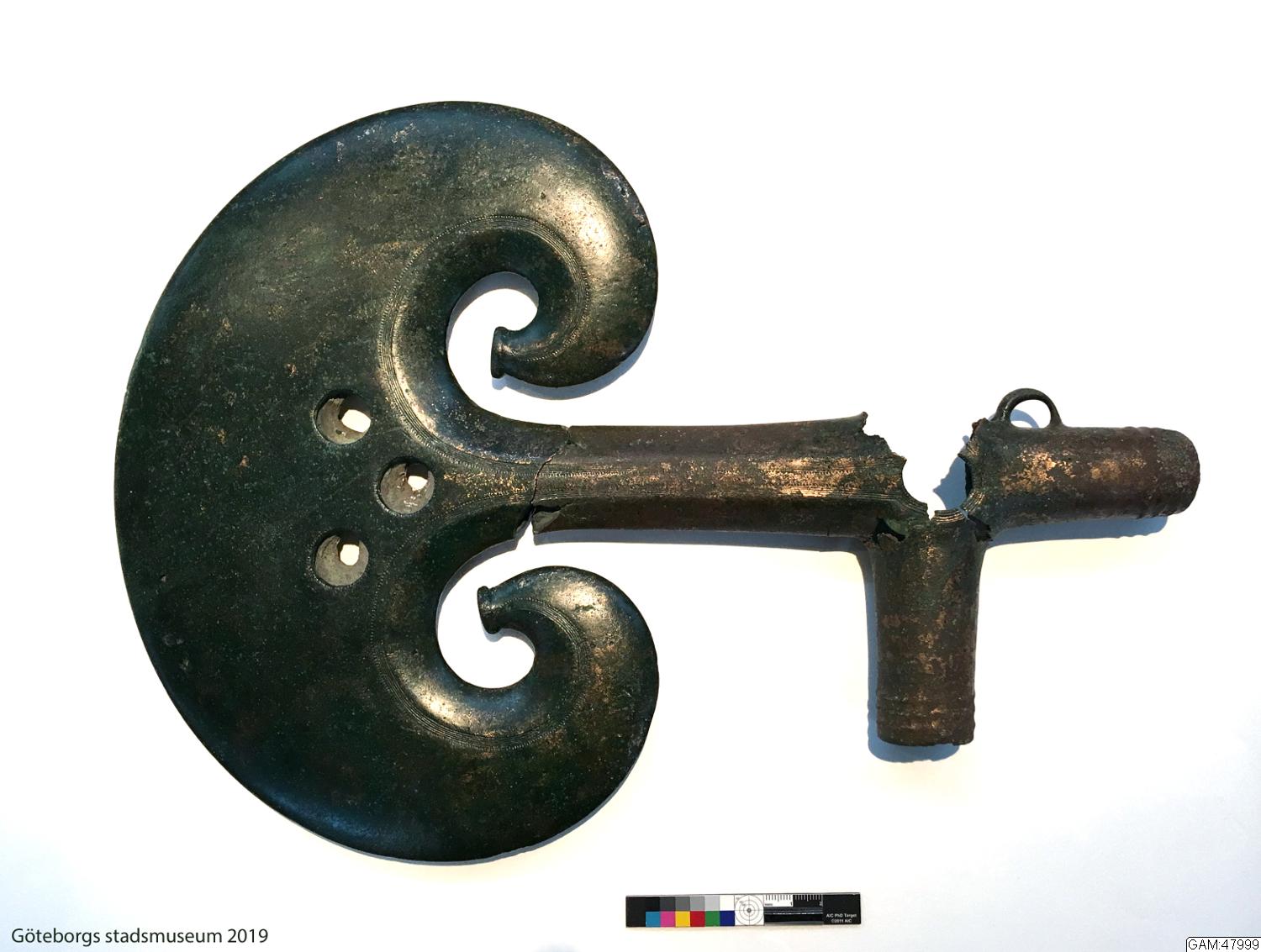 Yxan består av ett mycket tunt lager brons utanpå en lerkärna. Den har alltså varit omöjlig att använda som yxa varför man tror att den haft kultisk funktion.