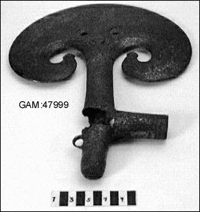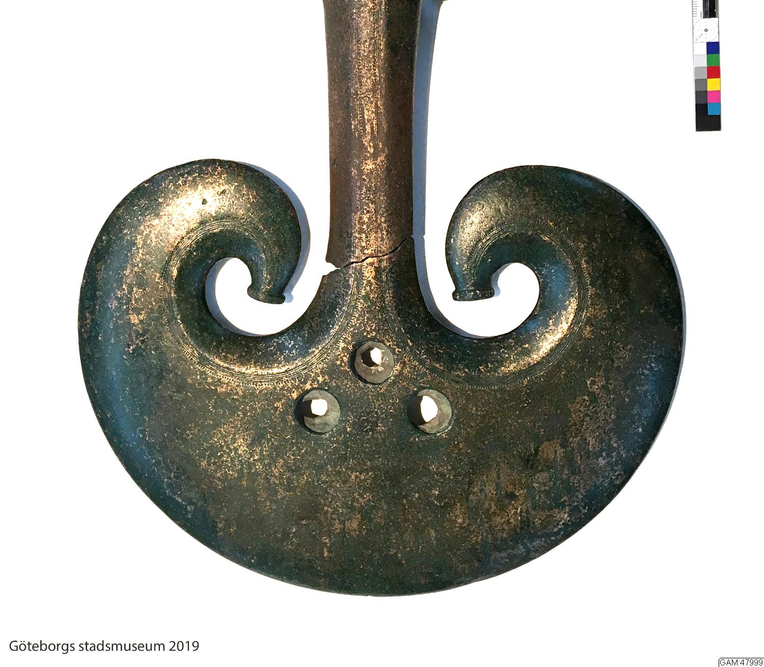 Omkring 800 f Kr har någon offrat denna yxa tillsammans med 6 halsringar till en för oss okänd gud. Liknande yxor har hittats på andra håll i Sverige och Danmark. På bronsålderns hällristningar avbildas också yxor av liknande form och ett par bronsfigurer som hittats i Danmark har liknande yxor i händerna.