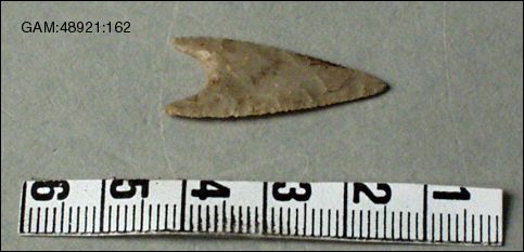 GAM:48921:162 :: pilspets, vapen, jaktvapen, flathuggen pilspets med urnupen bas, pilspets med urnupen bas