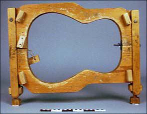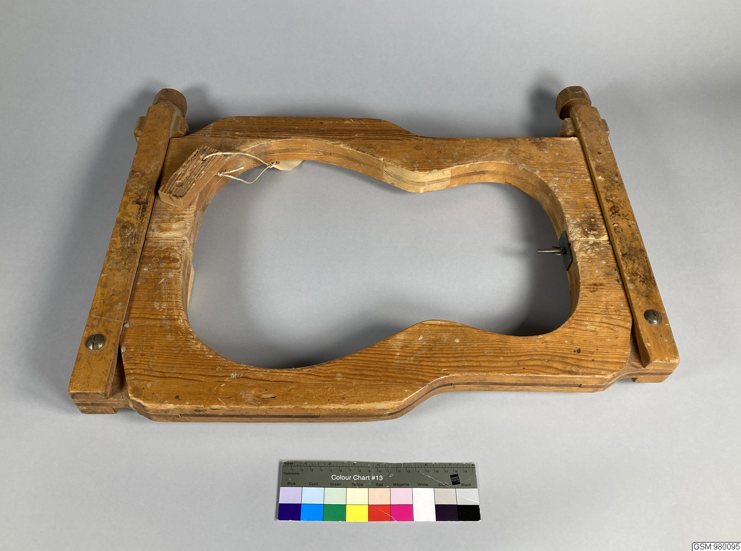 formpress för gitarrsarg; tvådelad; sammanhålles av två rörliga skruvanordningar