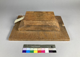 träskiva med pålimmade träklossar som vikt/handtag