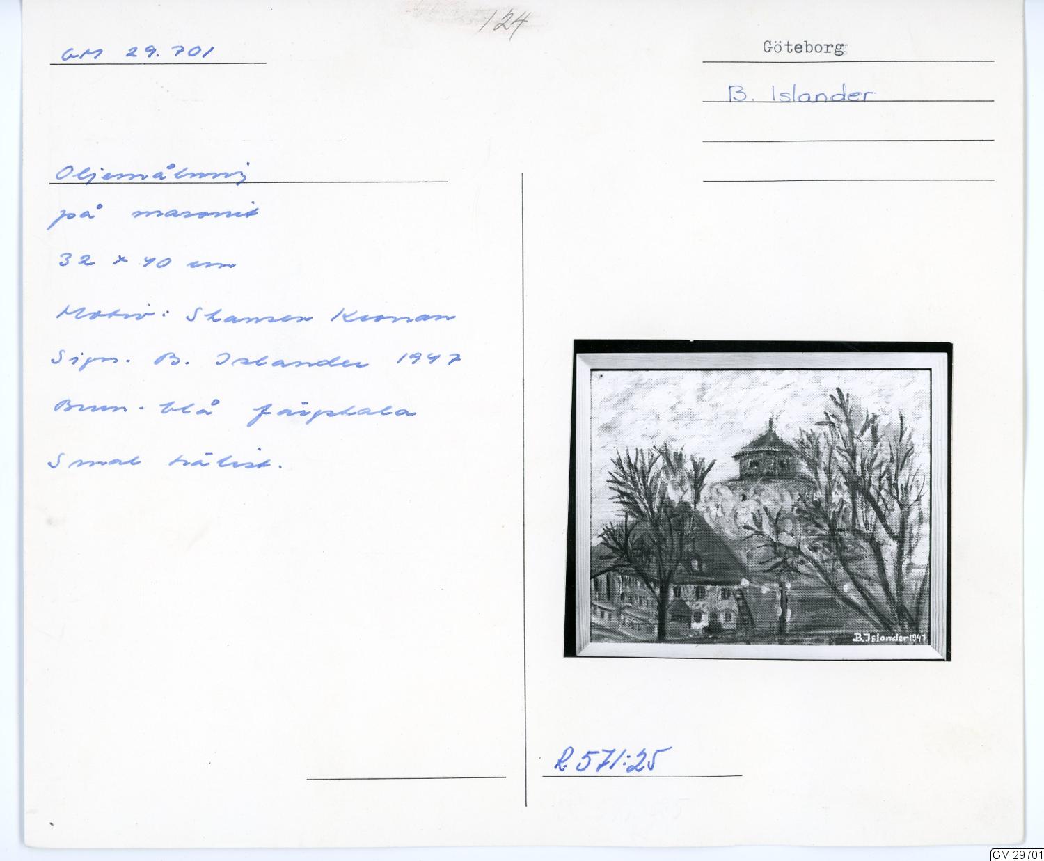 Information om Stadsmuseets samlingsdatabas CarlottaAnvändare av databasen varnas för att vissa poster kan innehålla bilder eller språk och termer som skildrar människor på ett sätt som kan uppfattas som stötande. En del objekt i samlingen kan också upplevas som obehagliga eller stötande.Vi är medvetna om att tillgängliggörandet är problematiskt. Vi har valt att inkludera denna historiska information eftersom den är en del av samlingarnas historia.