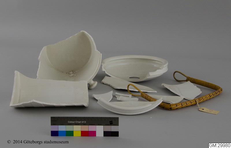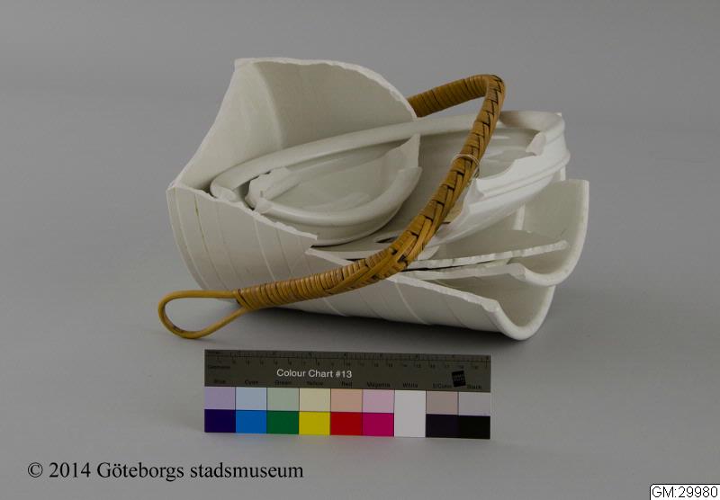 av vitt porslin. Rottinghandtag. Omkr 1900.