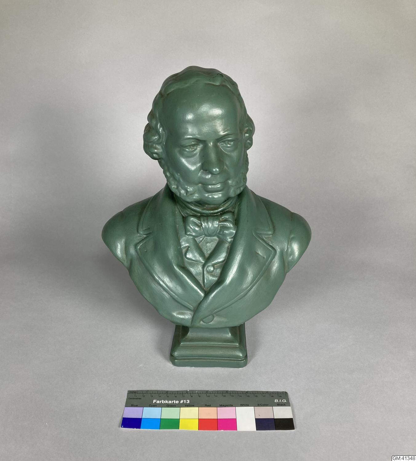 byst av uppfinnaren John Ericsson, (1803-1889), i grönmålad gips.