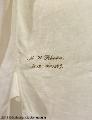 2 stycken av linne med fasta kragar och manschetter. Ärm-och krag- spjäll, och över axlarna, förstärkning på fram- och bakstyckena vid ärmen.Två 3,5 cm breda veck på var sida om öppningens motveck. Fyra tränsade knapphål, två sydda på längden , två på tvären, knapp och tränsat knapphål på kragen. Ena skjortan märkt :"M.W.Rhedin nr.12.1849"