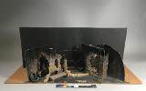 - dek delar av trä, papper, nät- och stålkonstruktion är limmade på grundplatta av masonit, horisonten med hjälp av träklossar som stöd.