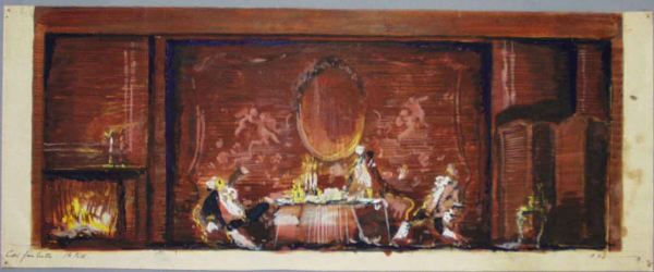 - Det Kongelige Teater i Köpenhamn. Troligen har samma dekorationsskisser används vid Göteborgs Lyriska Teater´s föreställning av Cosi fan tutte 1950. (överensstämmande enl. fotografier)