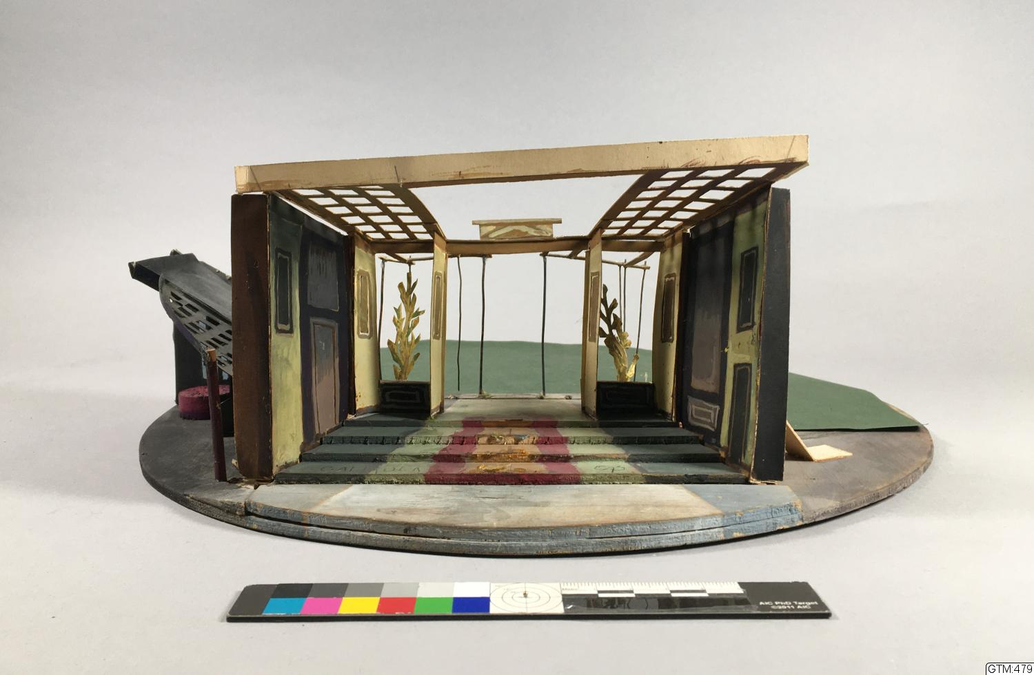 scenmodell, scenografi, tittskåpmodell [m belysning], interiör, vridscen