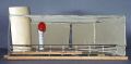 - tyg limmat på ståltrådskonstruktion som tryckts ner i grundplattan, reling och "ventil" på samma sätt, övriga delar i papper och trä är limmade på grundplattan.