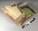 - grundplattan består dels av kartong och dels av tunn plywoodskiva, dek.delar av papper och trä har limmats mot varandra och på grunplattan.