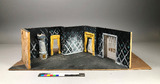 - dek delar av trä (fanér c:a 1 cm tjock) är limmade på grundplatta av masonit, fönster och dörr i papper som limmats på baksidan.