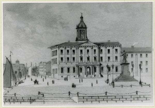 rådhus; staty; dag; sommar; exteriör; offentlig byggnad