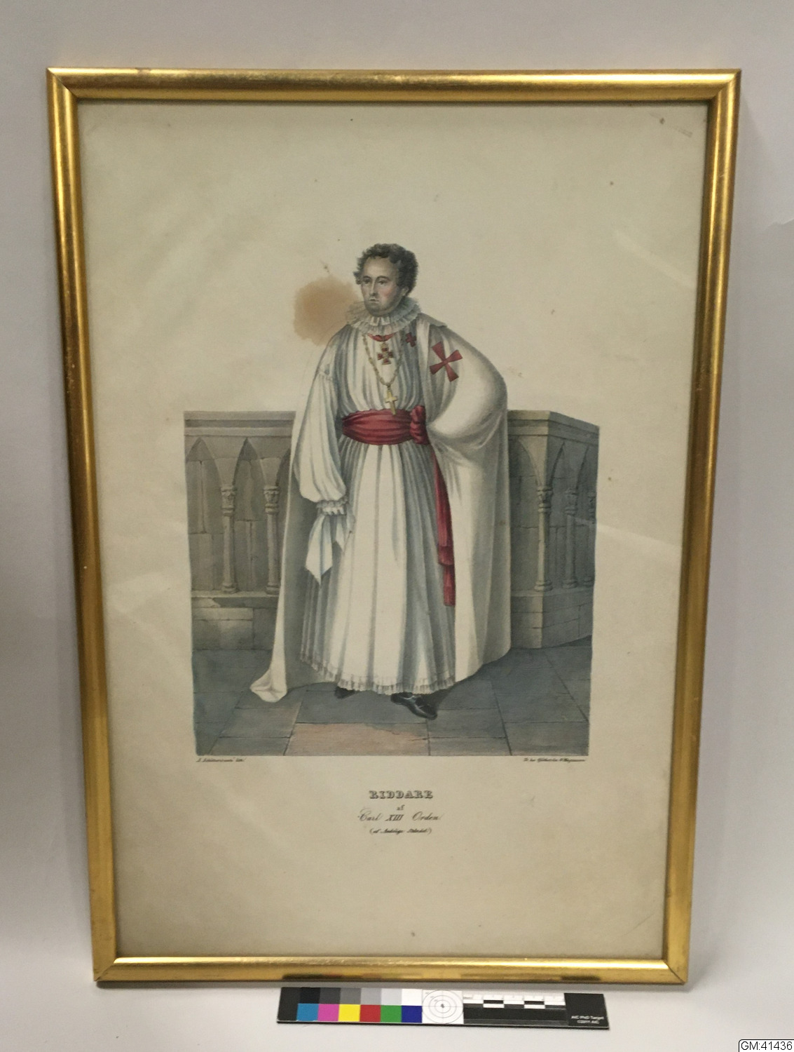 Riddare af Carl XIII Orden med Stora Korset. A. Schützercrantz lith. Tr. hos Gjöthström & Magnusson.