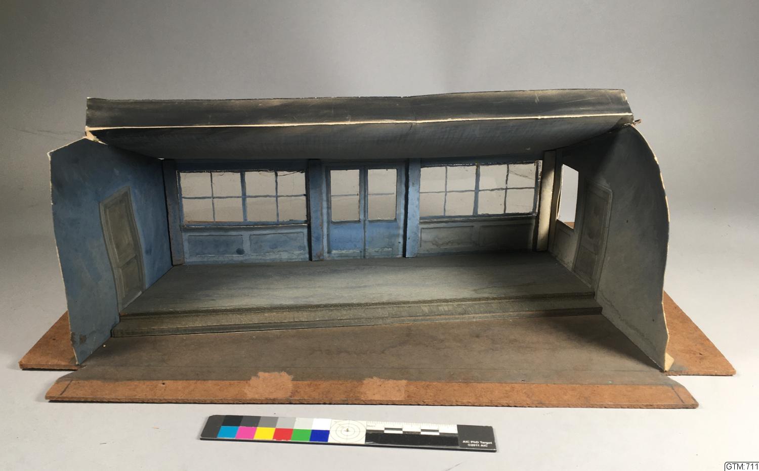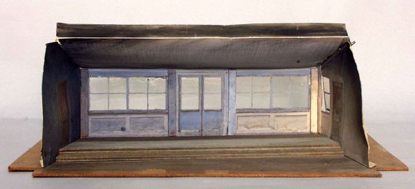 - avsatserna av trä är limmade på varandra och på grundplattan av tunn masonit, dek delar av papper limmade på utsidan av avsatsen och på grundplattan, fönstren målade och av plast.