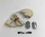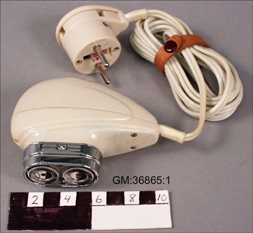 Elektrisk rakapparat, bilden visar rakapparaten (:1) med skärhuvud (:2) och lock (:3).