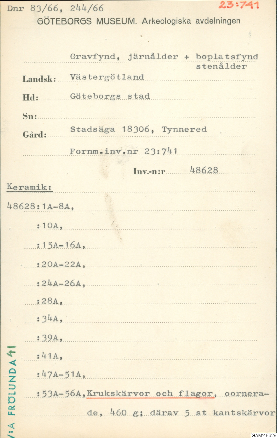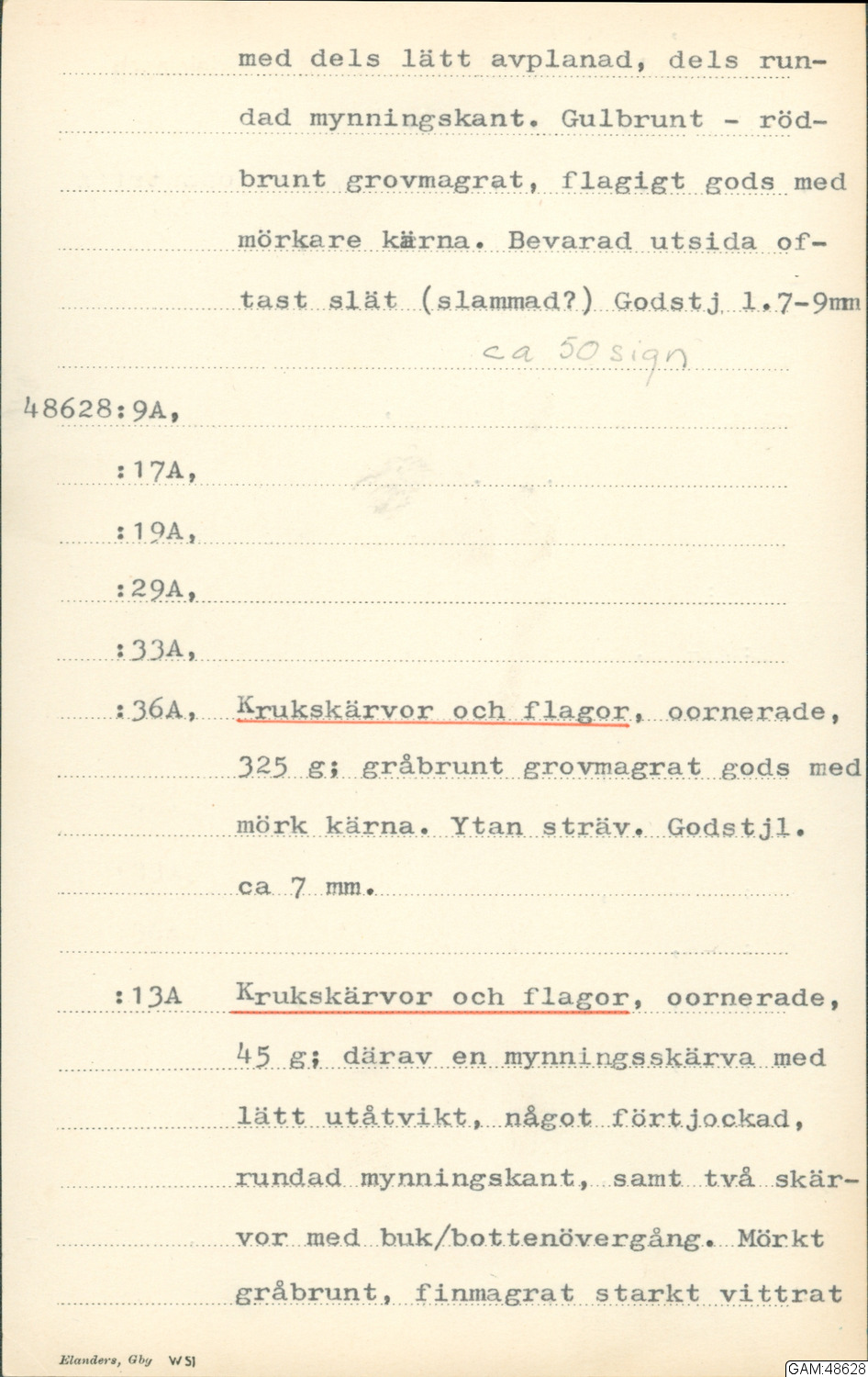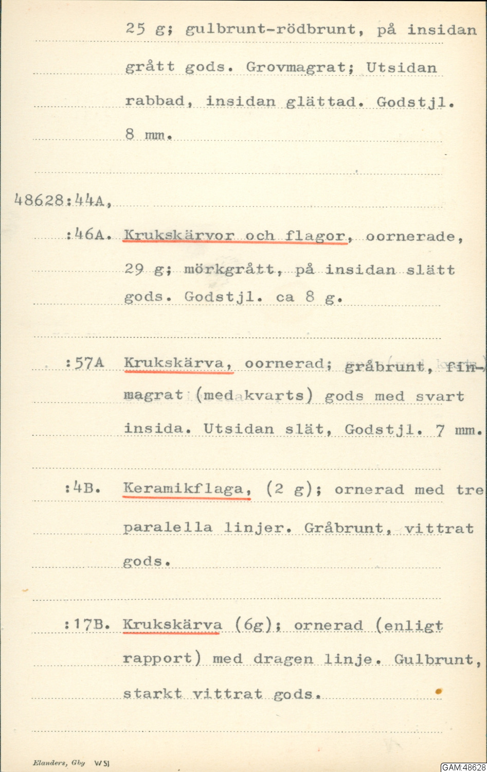 GAM:48628 :: grävningsfynd, utgrävningar, utgrävning, slutundersökning [fältark]