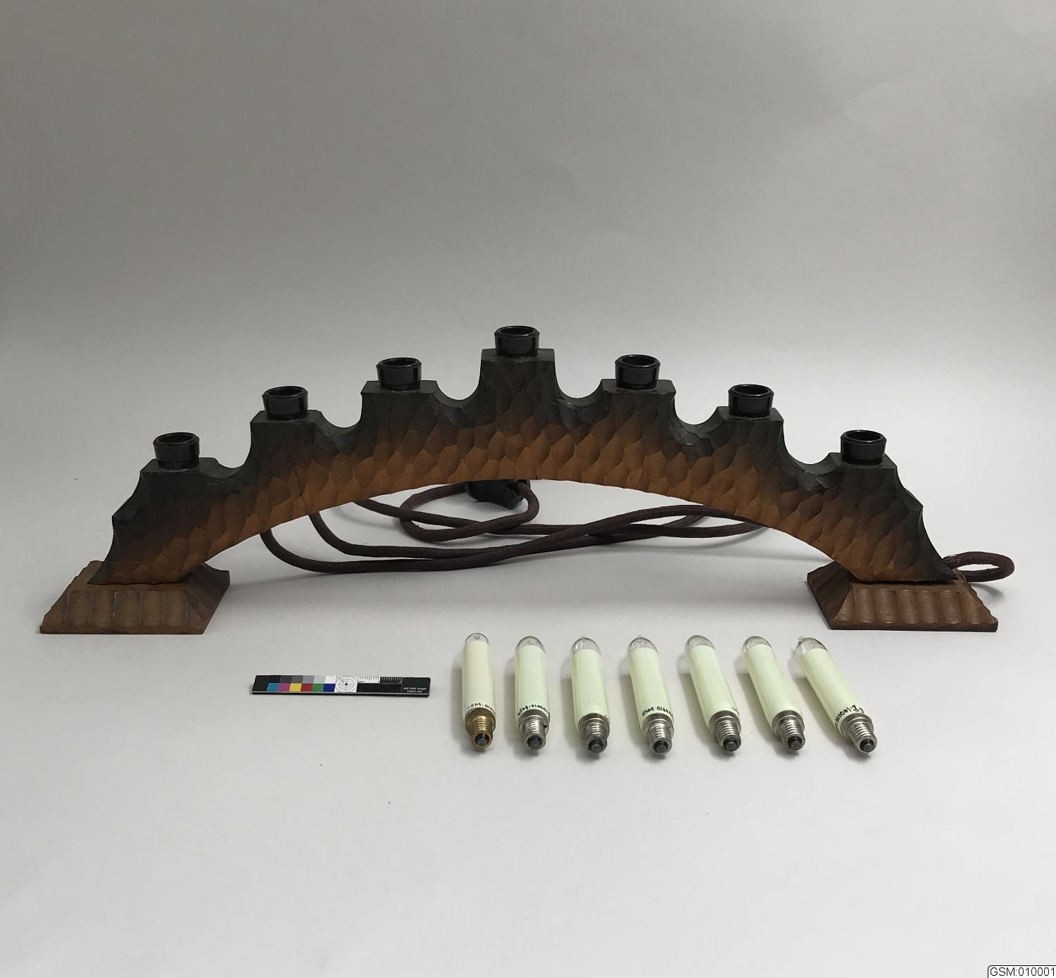 Denna ljusstake gav O.A til sin svärmor. Oscars svägerska Britt Blomqvist, Norrköping, ärvde denna ljusstake och har välvilligt upplåtit den för att bevaras. Ljusstaken har försetts med 32-V lampor, utom en som är original, 14 V.