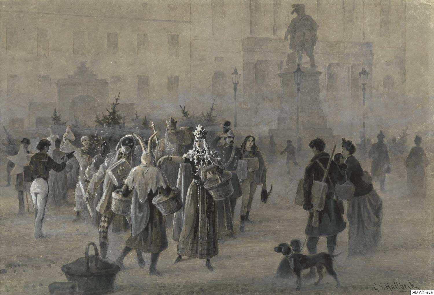 - Folkliv på Gustaf Adolfs torg juletid, i bakgrunden syns Bengt Erland Fogelbergs staty av Gustav II Adolf.