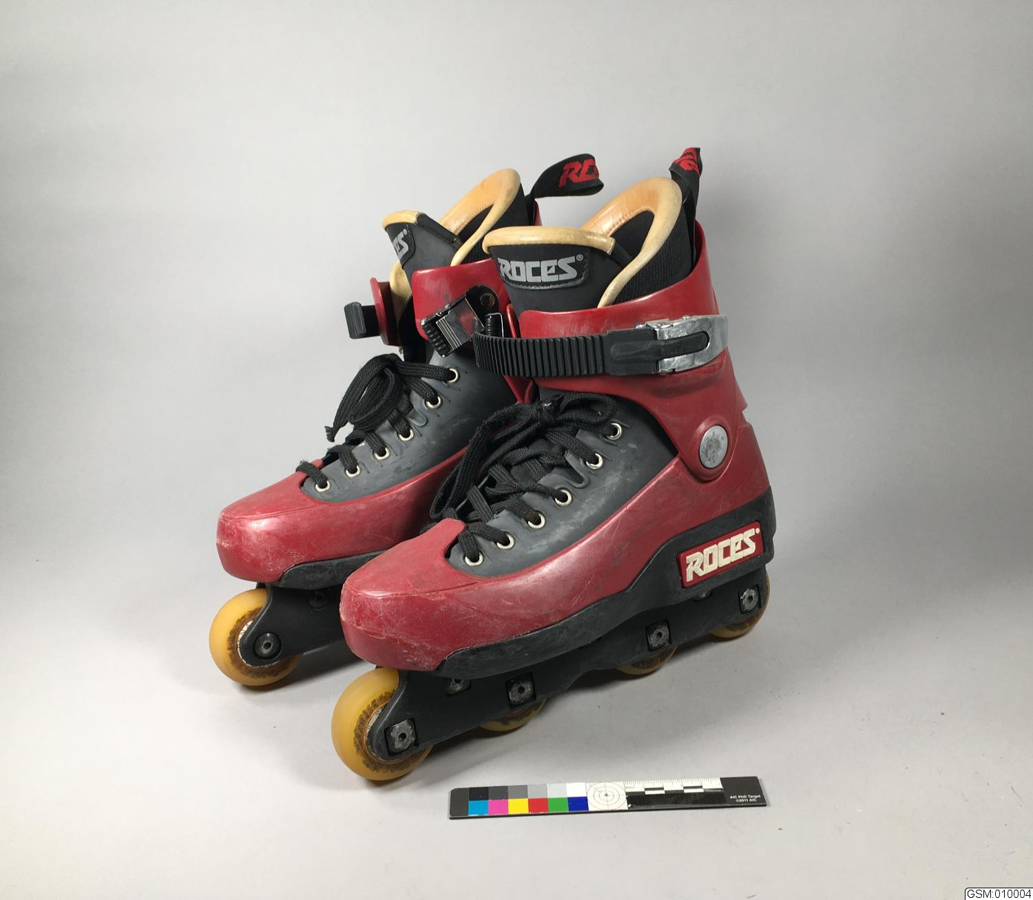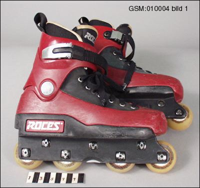Rullskridskor av inlines-typ, "Aggressive inlines" av märket Roces Fifth Element, årsmodell 1998.