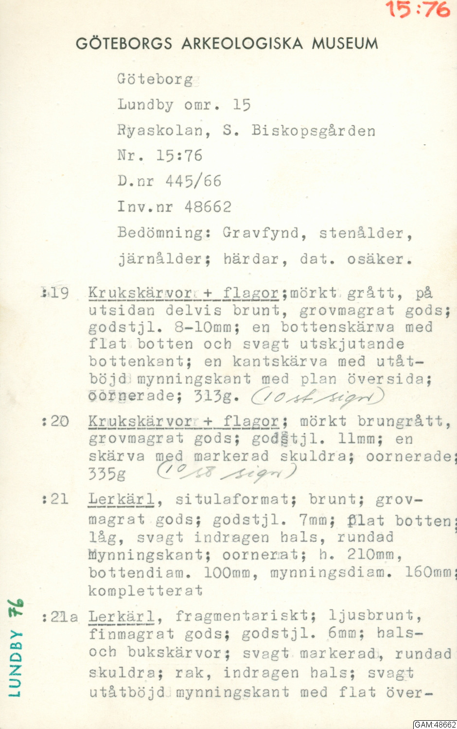 GAM :: Göteborgs arkeologiska museums samling