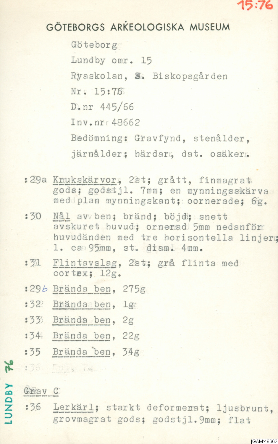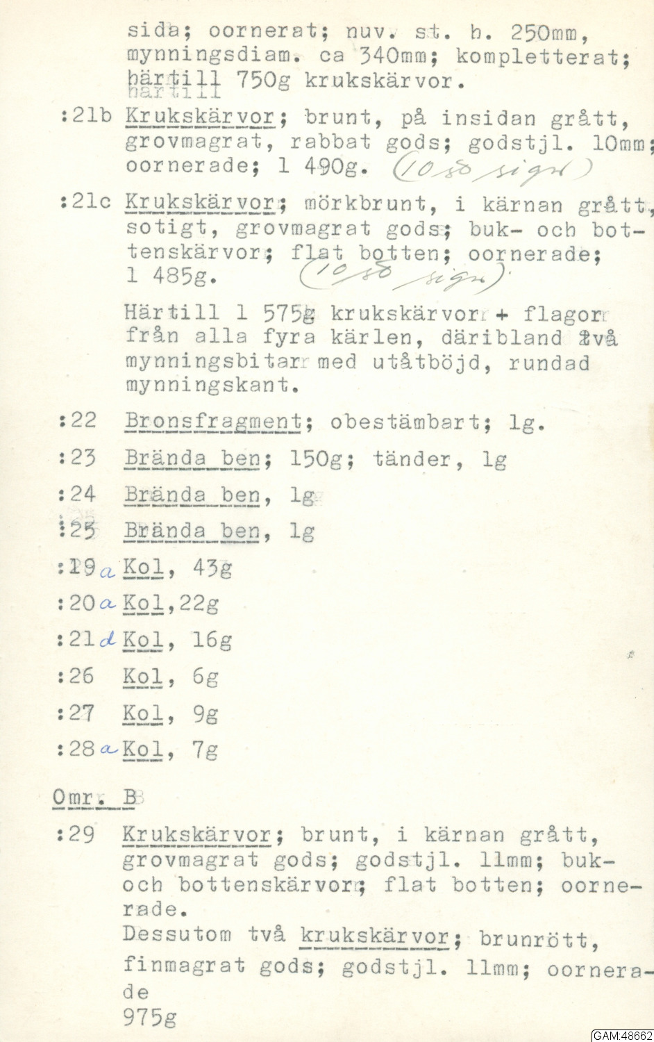 GAM:48662 :: utgrävning, utgrävningar, brända ben
