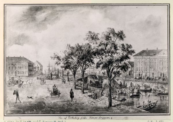 Stora Hamnkanalen, parti västerut mot kämpebron. T.h Ostindiska kompaniets hus.