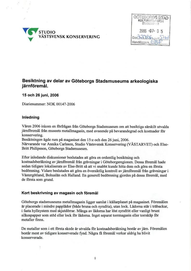 Besiktning av delar av Göteborgs Stadsmuseums arkeologiska järnföremål